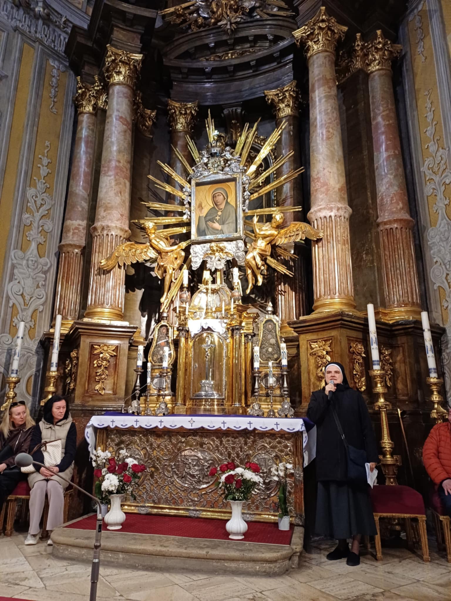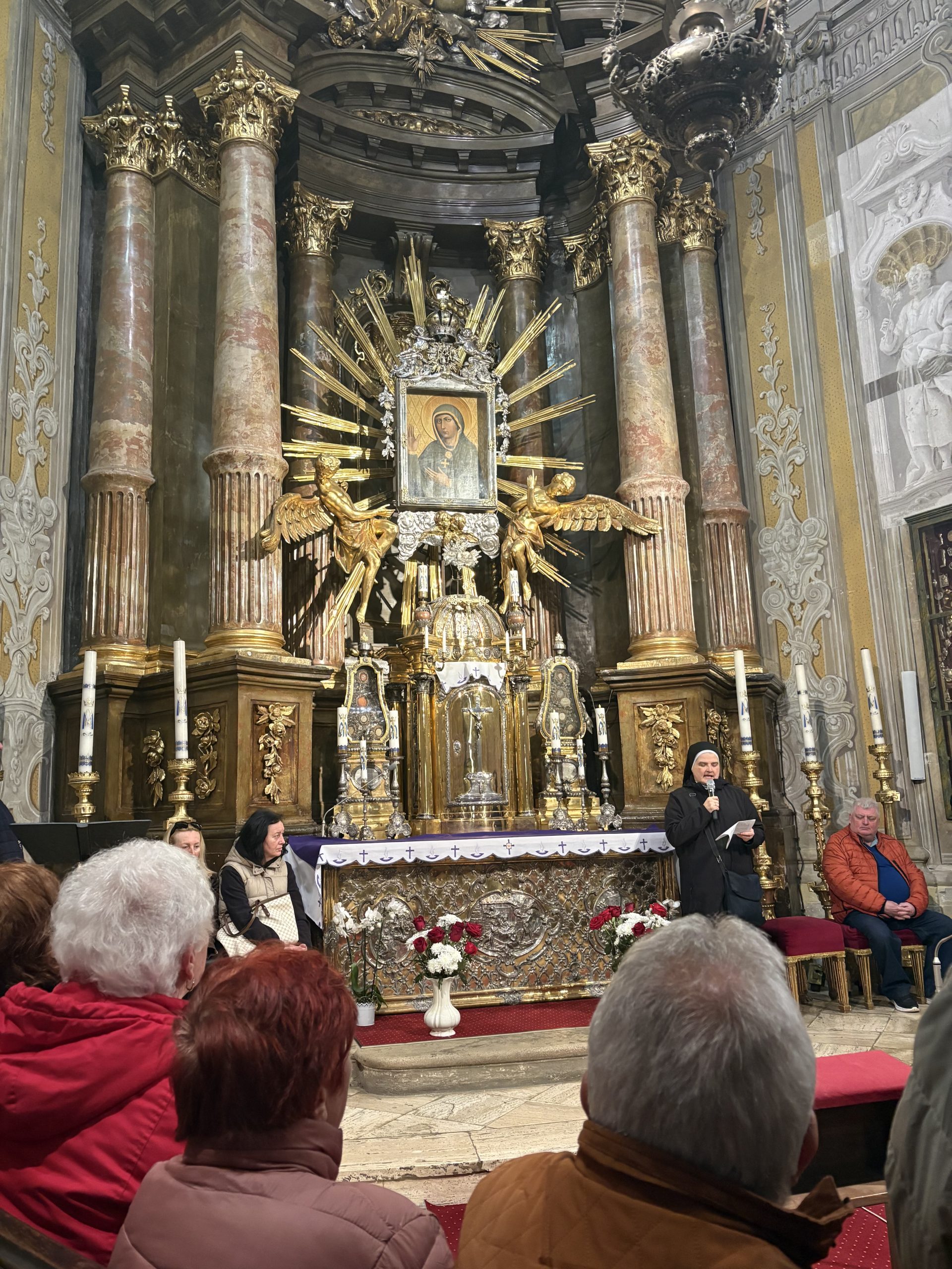 Naša púť sa začala návštevou Trnavy, kde sme zavítali do Baziliky svätého Mikuláša. Práve tu sa nachádza známy milostivý obraz Panny Márie Trnavskej, ku ktorému sme s úctou pristúpili v modlitbe a prosbách. Toto miesto nás pozvalo stíšiť sa a odovzdať svoje starosti i radosti do rúk Nebeskej Matky.