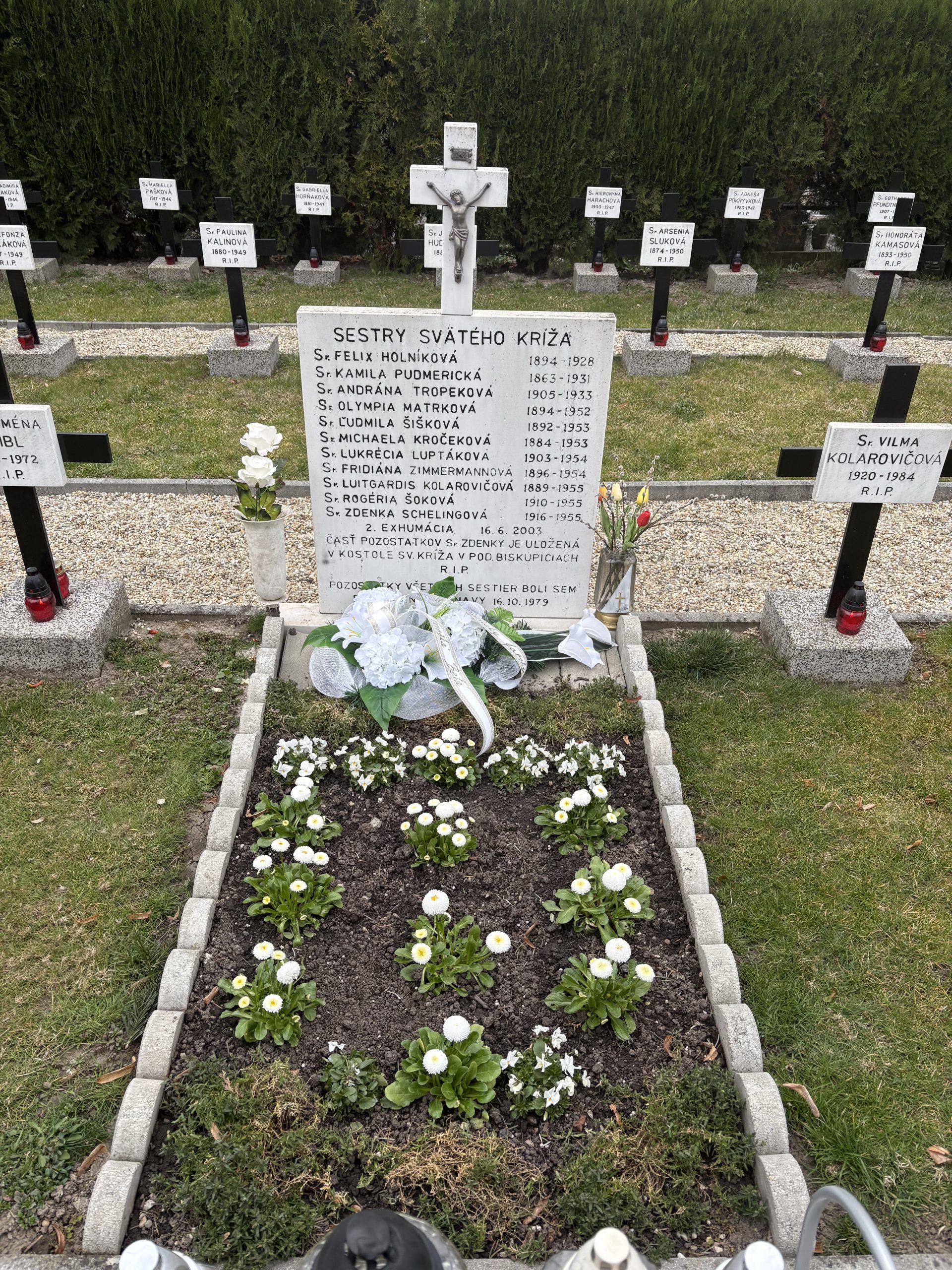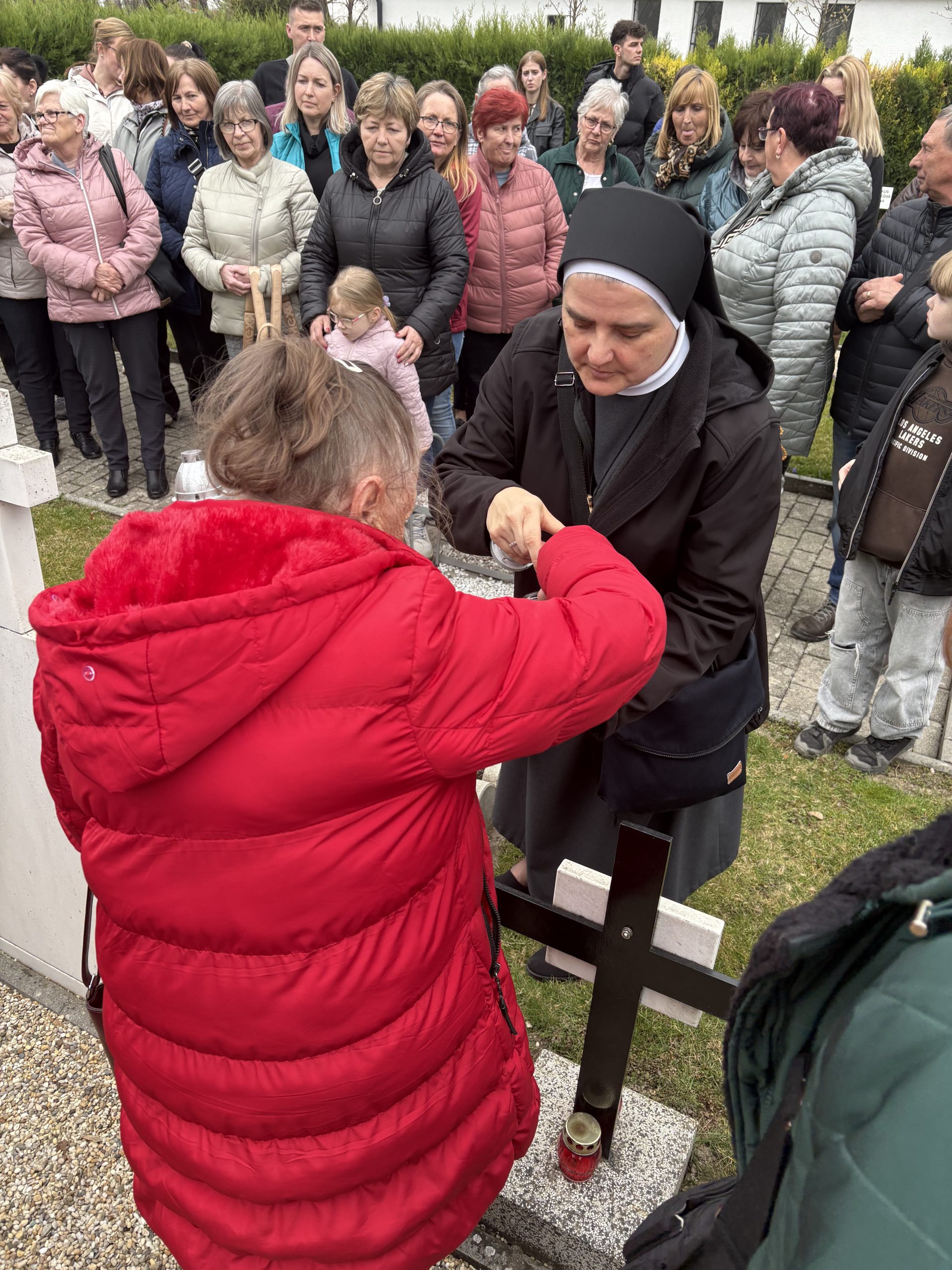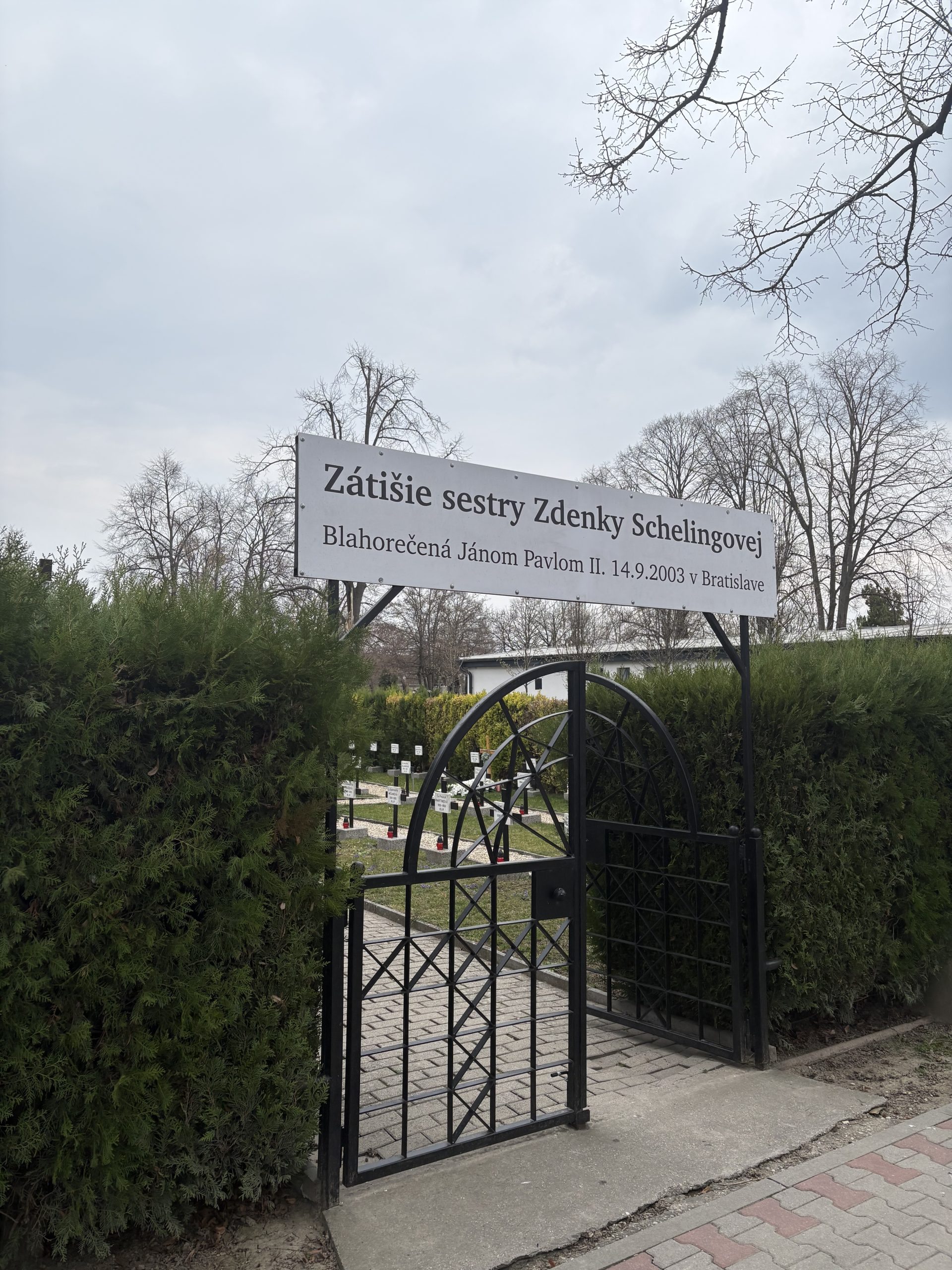Z Trnavy sme sa následne presunuli do pútnického miesta blahoslavenej Zdenky Schelingovej v Podunajských Biskupiciach. Tu sme mali možnosť ešte intenzívnejšie vstúpiť do jej života, obety a duchovného odkazu. Po srdečnom prijatí a chutnom obede, ktorý nám s láskou pripravili sestry, sme sa vybrali na cintorín – do Zátišia blahoslavenej Zdenky. Na tomto tichom a posvätnom mieste sme sa spoločne pomodlili Korunku k Božiemu milosrdenstvu, pričom sme si uvedomovali silu obety a odpustenia, ktoré bl. Zdenka svojím životom dosvedčila.